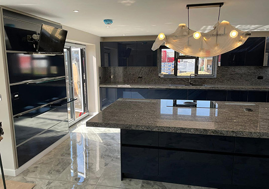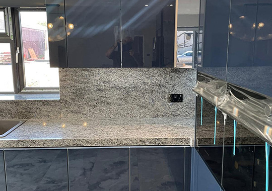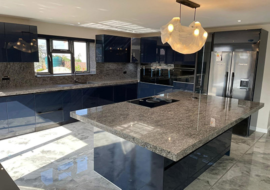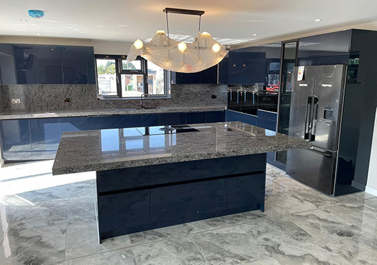 Nova Lack Deep Blue with a Granite worktop