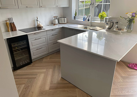 Windsor Lack Sahara with Dekton Aura worktop.